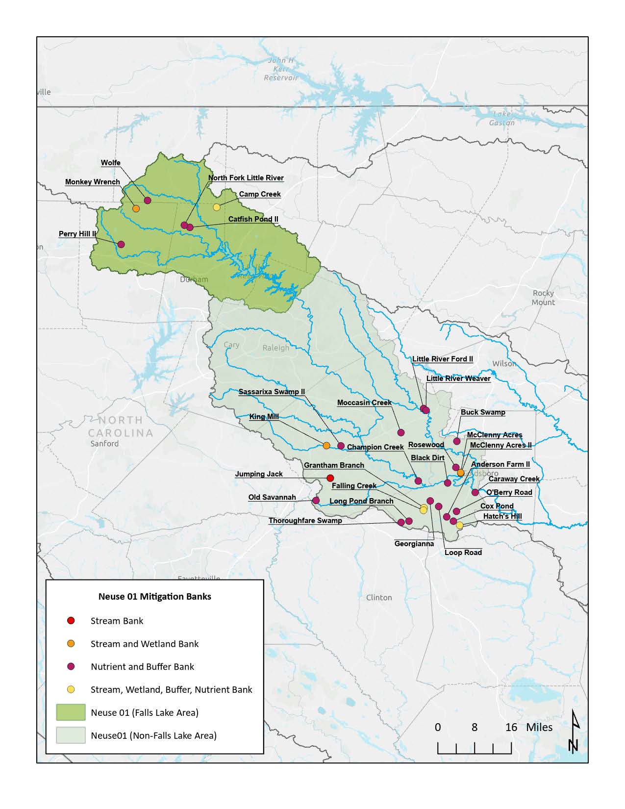 - Nutrient offset, riparian buffer, stream, and wetland credits for impacts in the Neuse 01 River Basin (HUC 03020201).